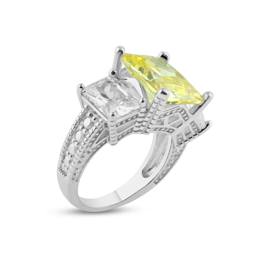 Silver 925 Rhodium Plated Yellow Center and Clear CZ Ring - STR00537