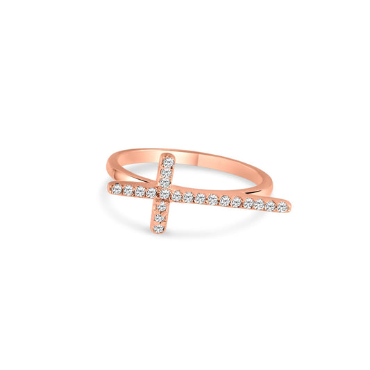 Silver 925 Rose Gold Plated Clear CZ Cross Ring - BGR00783RGP