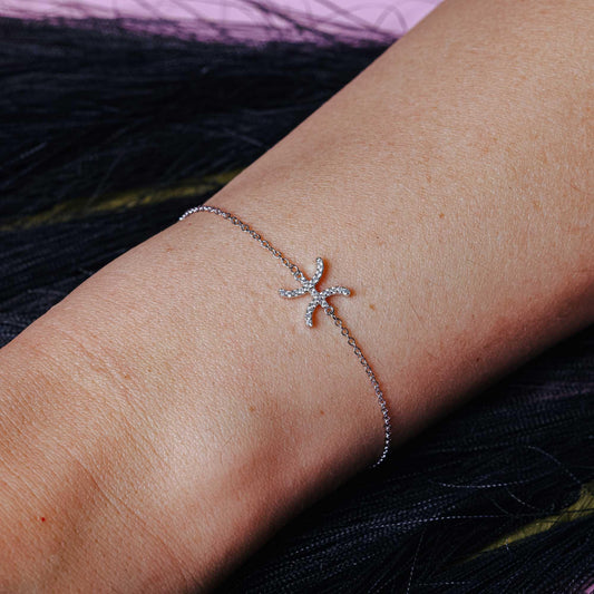 Rhodium Plated 925 Sterling Silver Pisces CZ Adjustable Link Bracelet - BGB00367