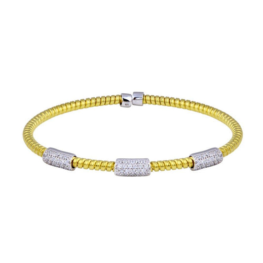 Gold Plated 925 Sterling Silver Italian 3 Wide CZ Bars Cuff Bracelet - ECB00034GP