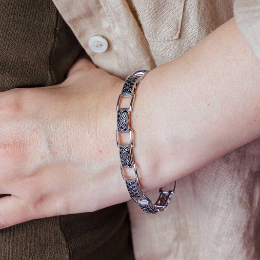 Rhodium Plated 925 Sterling Silver 7.6mm Cross Link CZ Tennis Bracelet - STB00608