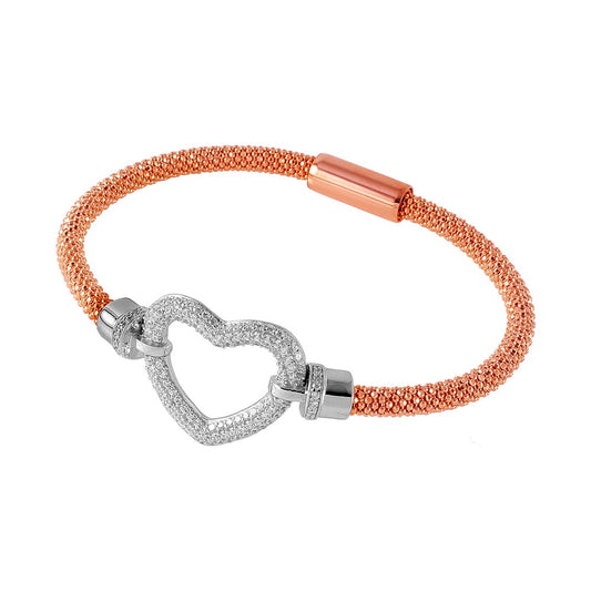 925 Sterling Silver Rhodium and Rose Gold Plated Open Heart Bracelet - ITB00181RGP-RH