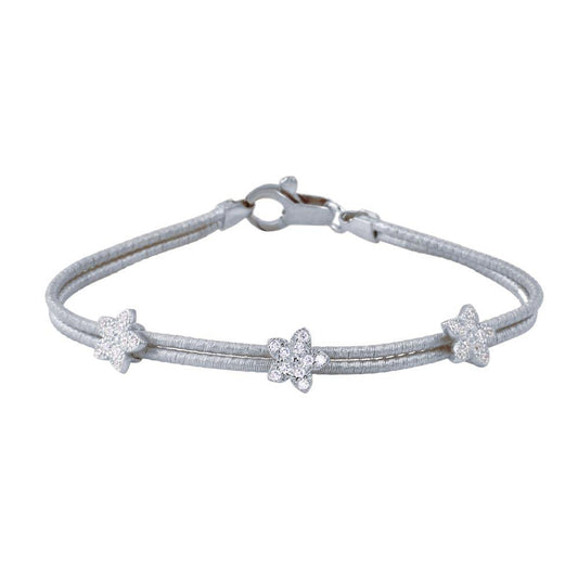 Rhodium Plated 925 Sterling Silver Two Strand CZ Flower Charm Bracelet - ECB00055RH
