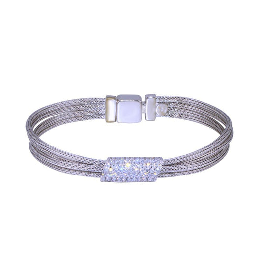 Clearance-Rhodium Plated 925 Sterling Silver Bar Glitter Magnetic Bracelet - SPB00010