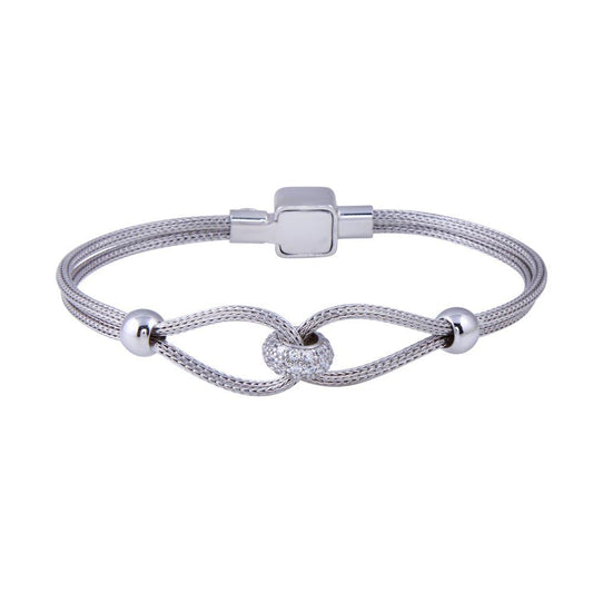 Rhodium Plated 925 Sterling Silver Intertwine CZ Bracelet - ECB00045RH