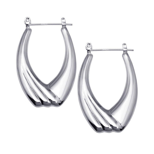 High Polished 925 Sterling Silver Hollow Drop Hoop Earrings - HP10