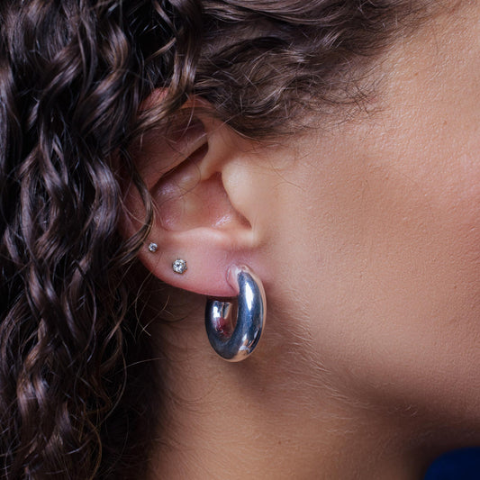 925 Sterling Silver High Polished Puffed Hoop Earring - ARE00031