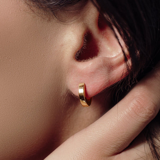 Gold Plated 925 Sterling Silver Electroforming Flat 4mm Hoop Earring - ARE00022GP