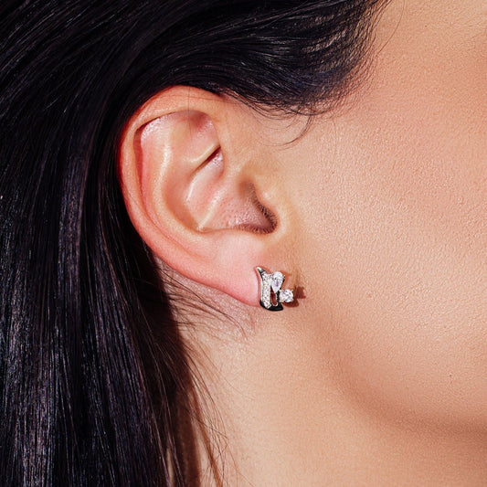 Rhodium Plated 925 Sterling Silver Semi-Hoop CZ Earring - STE01313