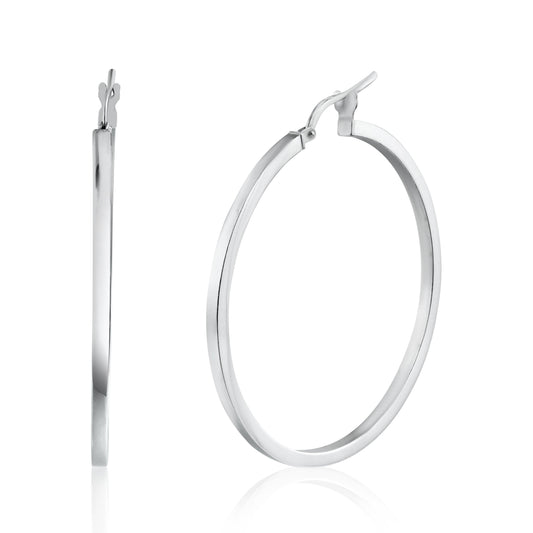 Rhodium Plated 925 Sterling Silver Sterling Silver 1.5mm Hoop Latch Back Earrings - ARE00033RH