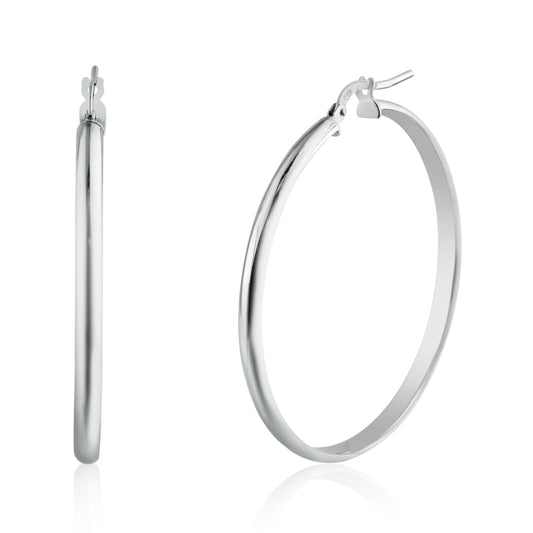 Rhodium Plated 925 Sterling Silver Silver 2mm Hoop Earring - ARE00026RH