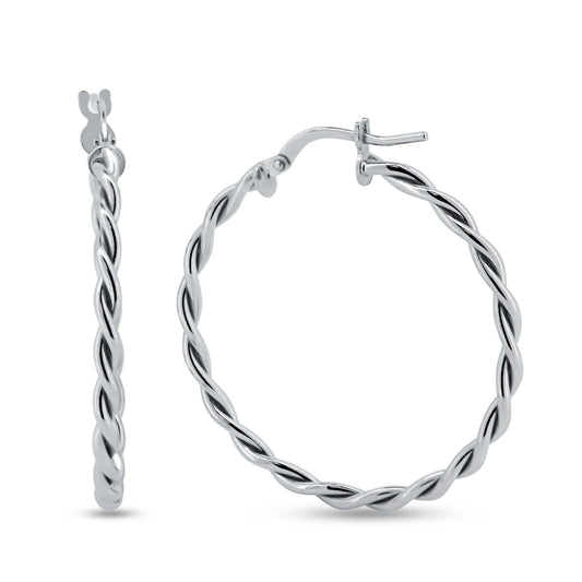 Rhodium Plated 925 Sterling Silver Silver Twisted Hoop Earrings - ARE00040RH