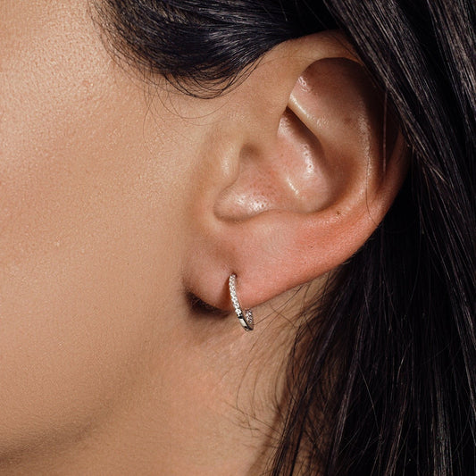 Rhodium Plated 925 Sterling Silver Round CZ huggie hoop Earring 6mm - STE01248
