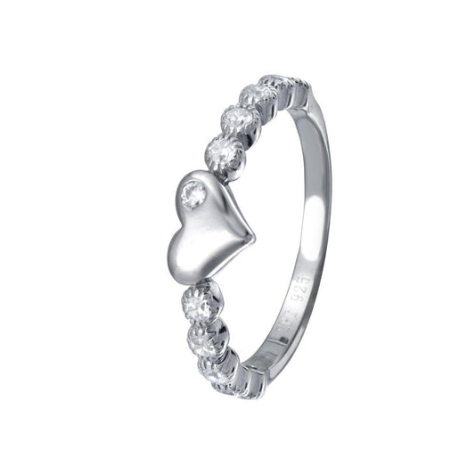 Rhodium Plated 925 Sterling Silver CZ Heart Bubble Shank Ring - STR01164