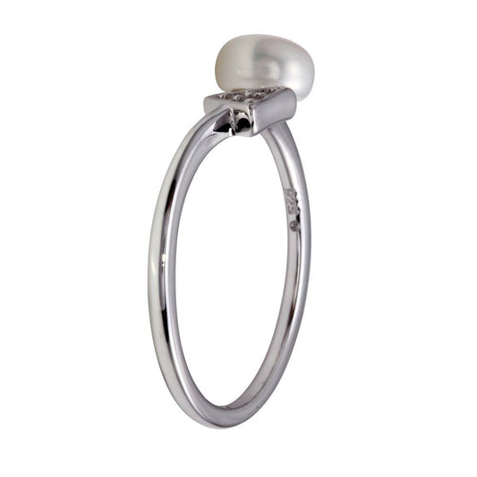 Rhodium Plated 925 Sterling Silver CZ and Synthetic Pearl Ring - BGR01188