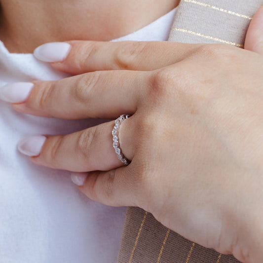 Rhodium Plated 925 Sterling Silver CZ and Eye Pattern Eternity Ring - BGR01185RHD