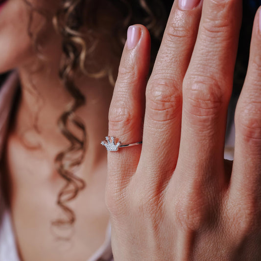 Rhodium Plated 925 Sterling Silver Crown Design CZ Ring - GMR00373