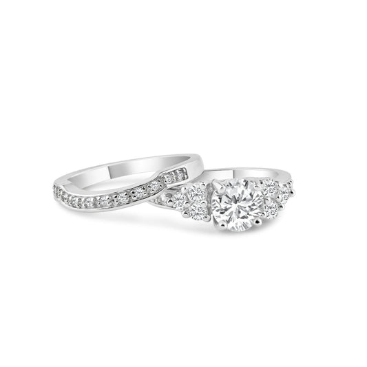 Silver 925 Rhodium Plated Clear Round CZ Bridal Ring Set - STR00388
