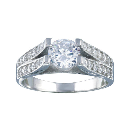 Rhodium Plated 925 Sterling Silver Clear Pave Set Round Center CZ Engagement Ring - AAR0078