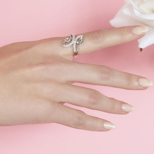 Silver 925 Rhodium Plated Clear CZ Mini Infinity Ring - BGR00769