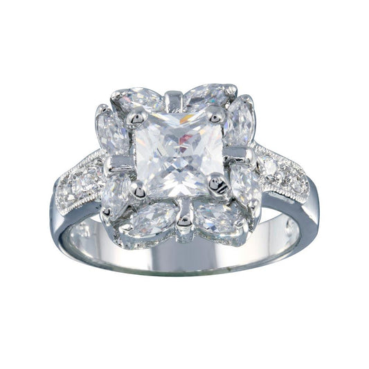 Rhodium Plated 925 Sterling Silver Clear Cluster CZ Square Ring - ACR00008