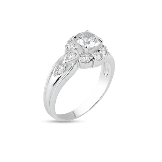 Rhodium Plated 925 Sterling Silver Clear CZ Bridal Ring - BGR00398