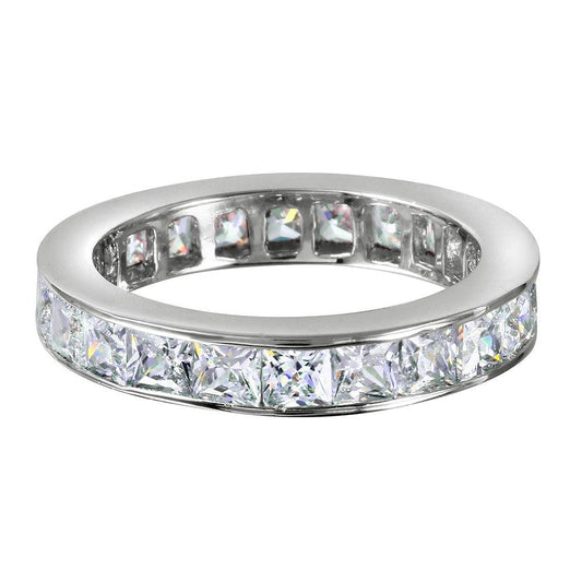 Silver 925 Rhodium Plated Channel Set Clear CZ Ring - BGR00834