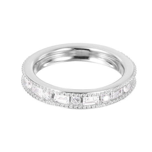 Silver 925 Rhodium Plated Clear Baguette CZ Eternity Ring - BGR00760