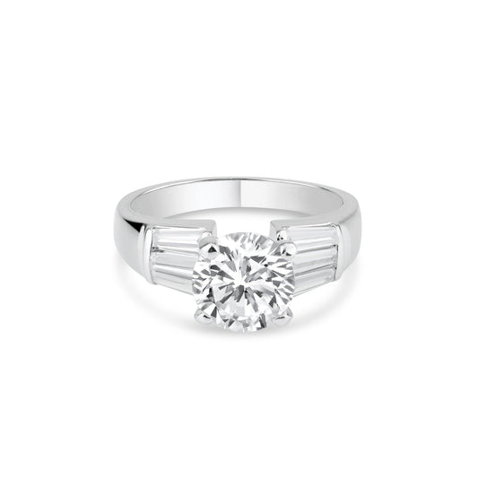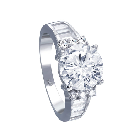 Rhodium Plated 925 Sterling Silver Clear Baguette Round CZ Bridal Ring - BGR00393