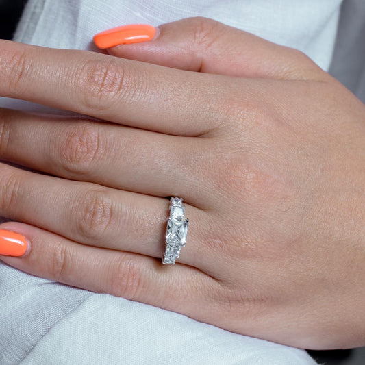 Rhodium Plated 925 Sterling Silver Clear 5 Stone Set CZ Bridal Ring - BGR00017