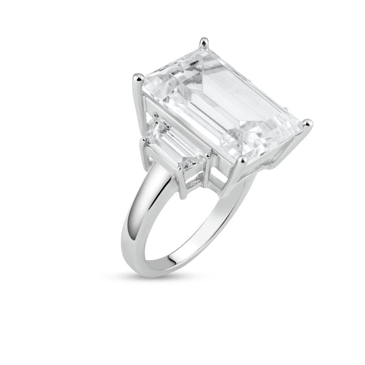 Rhodium Plated 925 Sterling Silver Clear Baguette and CZ Ring - BGR01331