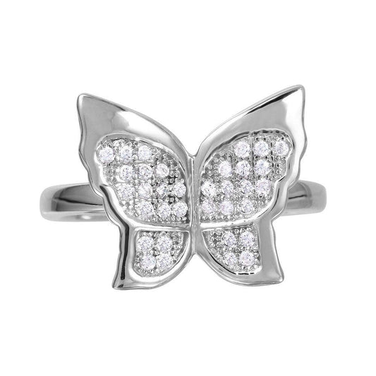 Silver 925 Rhodium Plated Butterfly Ring with Micro Pave CZ Stones - BGR01019