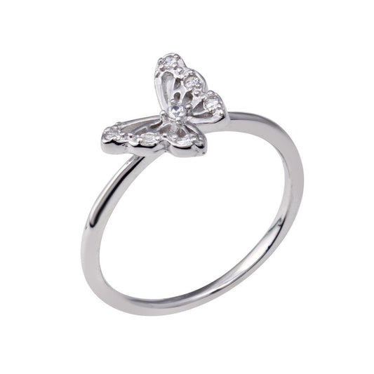 Rhodium Plated 925 Sterling Silver Butterfly Clear CZ Ring - BGR01347