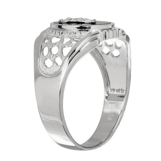 Rhodium Plated 925 Sterling Silver Black Oval Body of Christ Ring - GMR00241RH