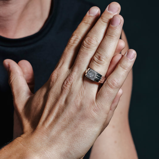 Two-Tone 925 Sterling Silver Men's 925 Sterling Silver Circle Design CZ Ring - GMR00276RG