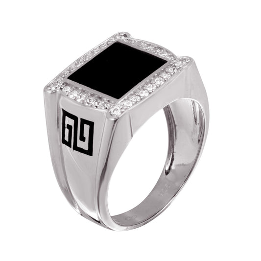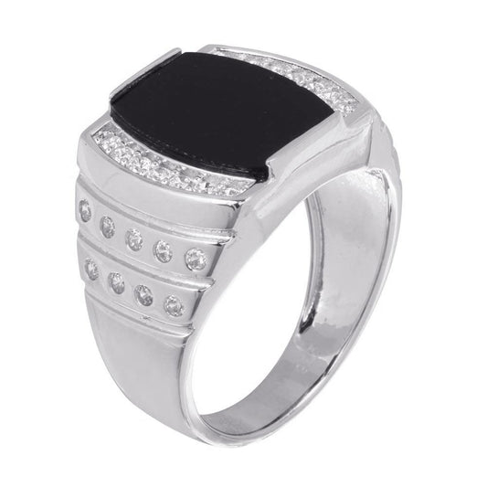 Men's Sterling 925 Sterling Silver Rhodium Square Black Onyx Ring - GMR00342