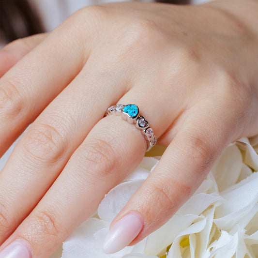 Silver 925 Rhodium Plated Blue Center CZ Heart Ring - BGR00014B
