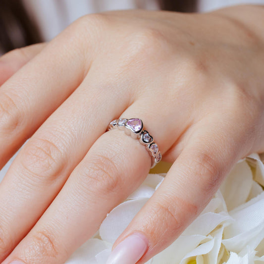 Silver 925 Rhodium Plated Pink Center CZ Heart Ring - BGR00014P