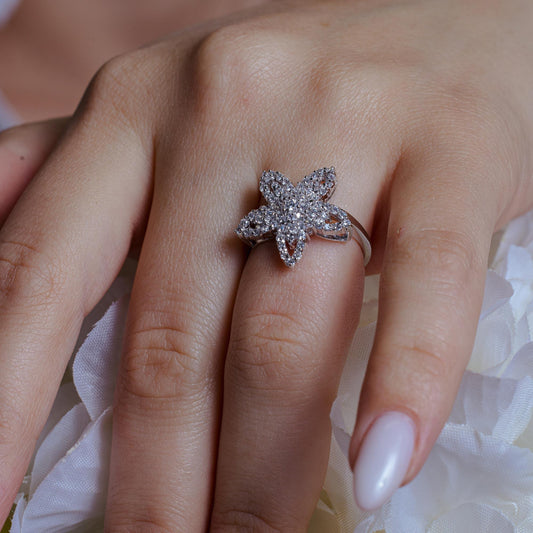 Closeout-Silver 925 Rhodium Plated Clear Pave Set CZ Starfish Ring - BGR00102