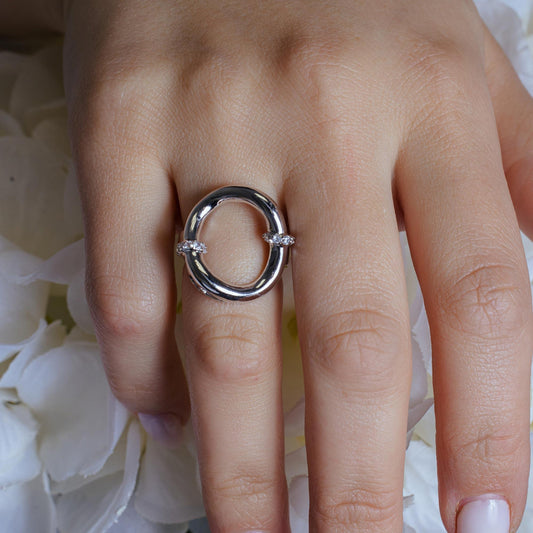Closeout-Silver 925 Rhodium Plated Clear CZ Open Circle Ring - BGR00106