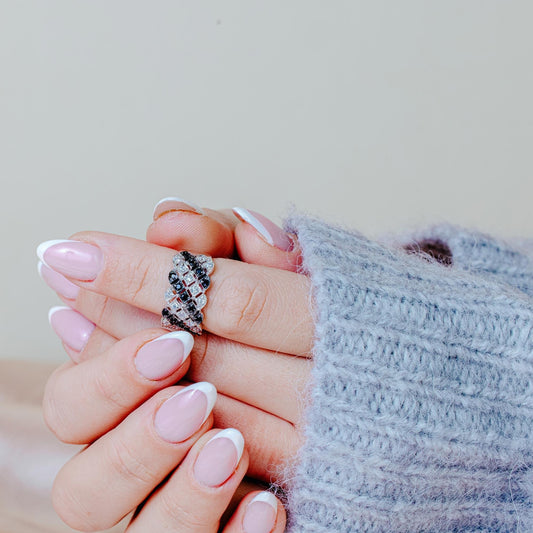 Closeout-Silver 925 Rhodium and Black Rhodium Plated Clear and Black CZ Net Ring - BGR00139