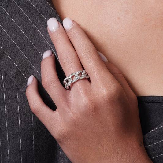Rhodium Plated 925 Sterling Silver Iced Cuban Link Clear CZ 8.7mm Ring - PAR00449