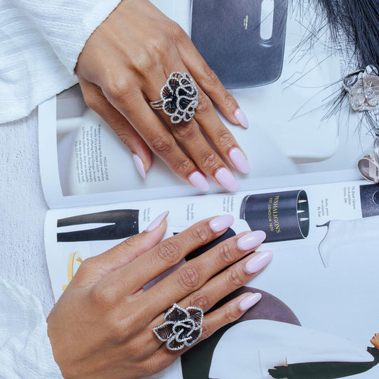 Silver 925 Rhodium and Black Rhodium Plated 2 Toned Clear CZ Coral Flower Ring - BGR00307