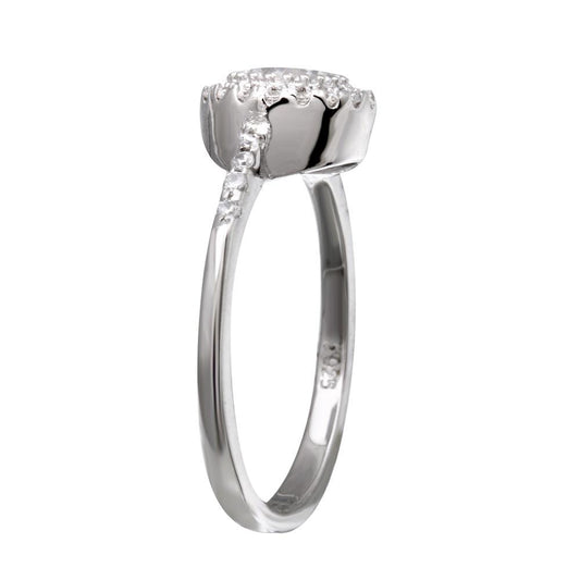 Silver 925 Rhodium Plated Clear Cluster CZ Bridal Ring - BGR00401