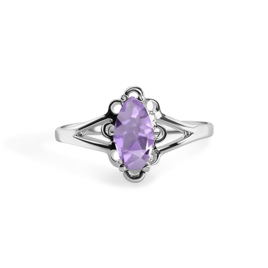 Rhodium Plated 925 Sterling Silver Marquise Birthstone Filigree Ring- SPR00003