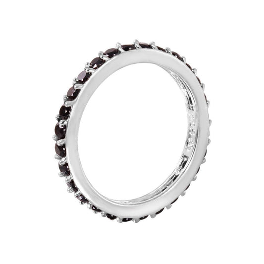 Silver 925 Rhodium Plated Black CZ Stackable Eternity Ring - STR00119BLK
