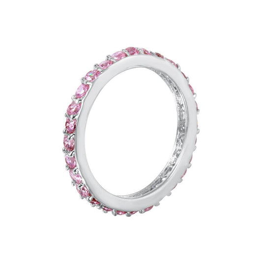 Silver 925 Rhodium Plated Pink CZ Stackable Eternity Ring - STR00119PNK