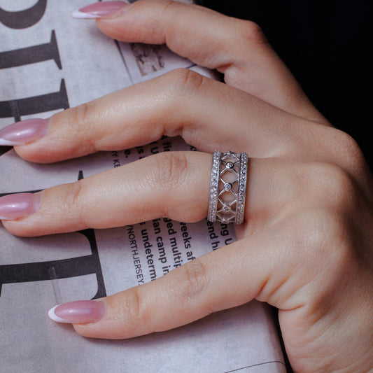 Silver 925 Rhodium Plated High Polish CZ Ring - STR00169