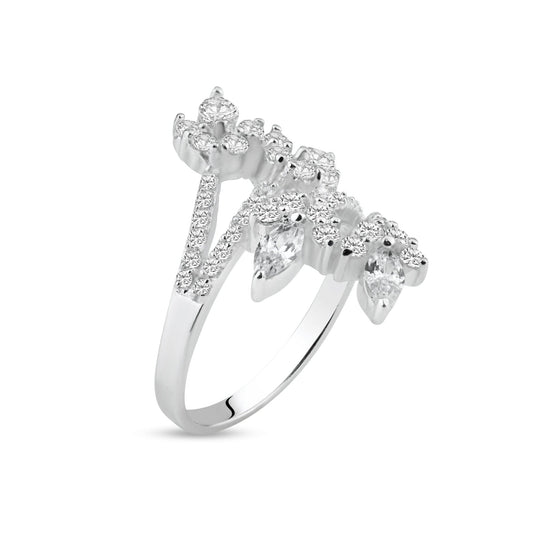 Silver 925 Rhodium Plated CZ Flower Wrap Ring - STR00546