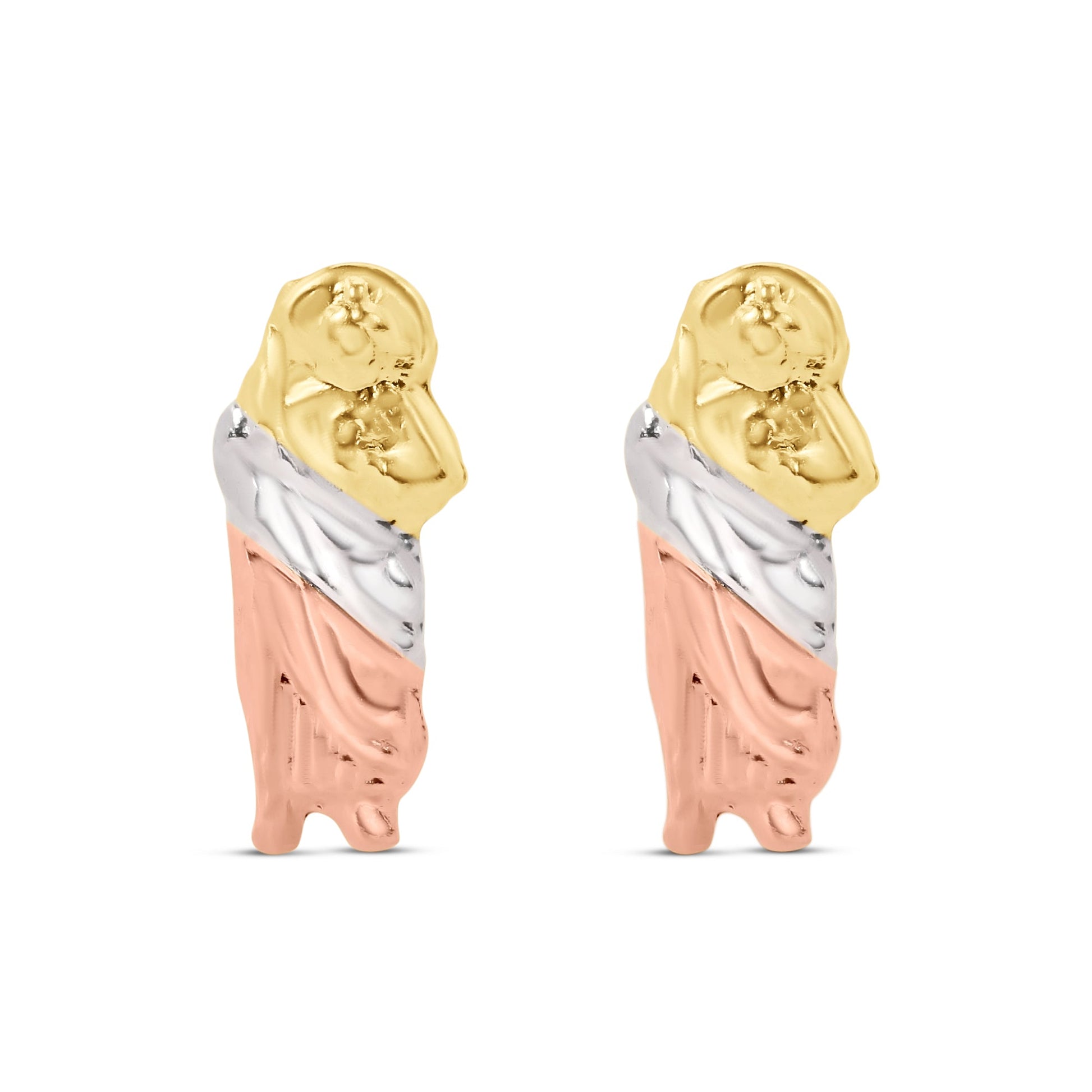 The earrings feature a three-tone design, with yellow, white, and rose gold used to create a beautiful contrast of colors. The St Jude design is carefully crafted with intricate details that highlight the saint's iconic image.